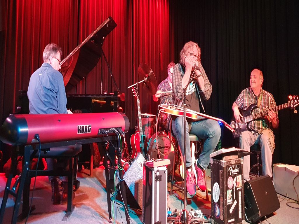 pure blues, das sind die vier Urgesteine aus der Frauenfelder Musikszene Martin Beerli (keyboard), Globi Straub (bass), Billy Schmid (drums) und Guscht Schmid (guitar, harp, vocal). Jeder Einzelne war bereits in der Vergangenheit erfolgreich in überregional bekannten Bands wie z.B. Waidele’s Conversation, Lennox CF, Galgevögel, Wallbanger Jazzgroup, Andy Egert und East Side Blues Band unterwegs. Nun sind die Vier mit einem erdig-groovigen Blues zusammen unterwegs. Allen voran Guscht Schmid, «Mr. Pure Blues» himself, prägt die Band mit seiner markanten Stimme, seiner fetzigen Harp und natürlich mit seinem viel«saitigen» Gitarrensound. Martin Beerli brilliert mit virtuosem Tastenspiel und hat damit einen wesentlichen Anteil am eigenständigen Groove der Band, während der markige Bass von Globi Straub und die knackig und mit viel Drive gespielten Drums von Billy Schmid den passenden Boden legen für den vom Publikum geliebten Livesound der vier Bluesmänner.
